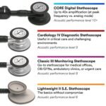 - Tunable, dual-sided stainless steel chest piece with open or closed bell.
